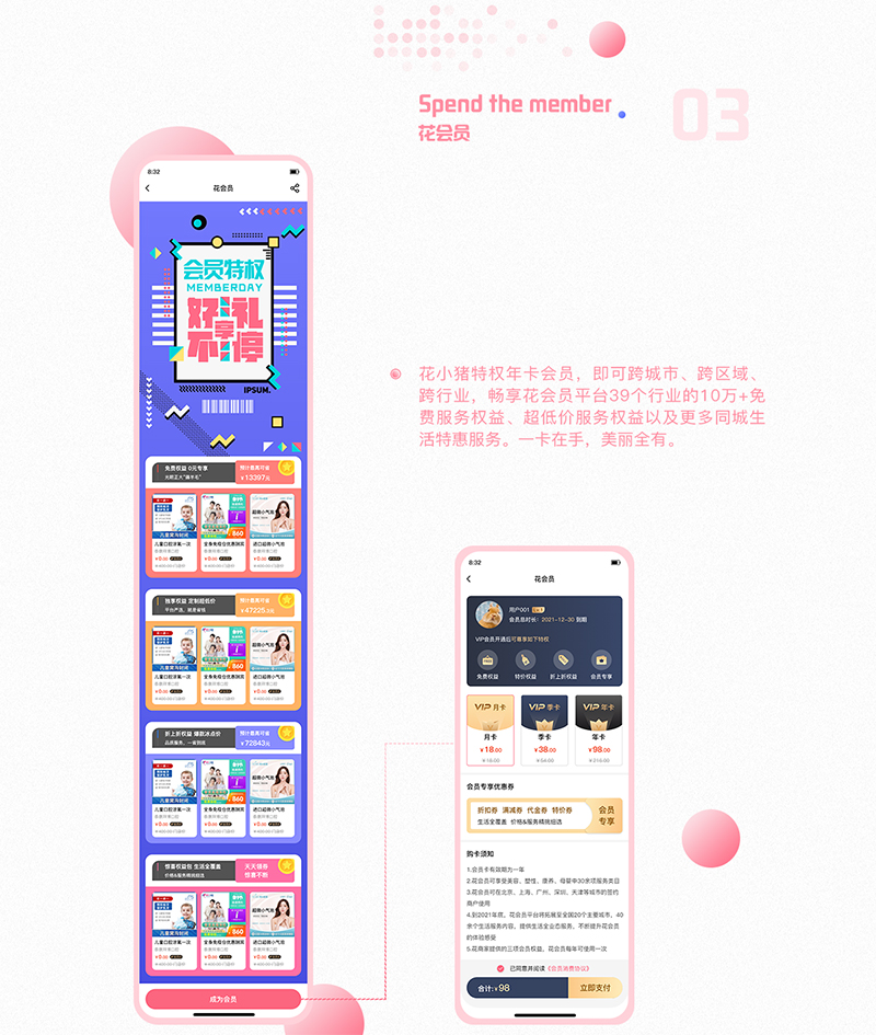 会员管理:会员特权主要是每月领取会员优惠卷,会员相关的折扣卷的领取。特价门店的服务权益。