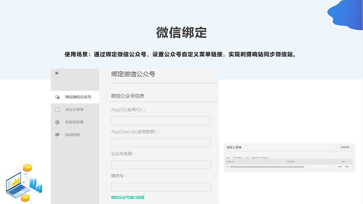 3、 公众号开发——功能定制开发;底部菜单制作;营销活动策划制作;投票活动;抽奖活动;小游戏;现金抽奖;会议大屏互动等制作开发。
