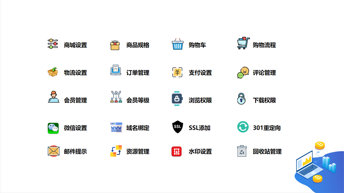 2、 小程序开发——微信、百度、头条、抖音小程序定制开发;各行各业千套小程序模板;商城小程序;分销小程序;门店会员小程序;会员卡小程序;优惠券小程序;拼团小程序;社区团购小程序;在线预约小程序。