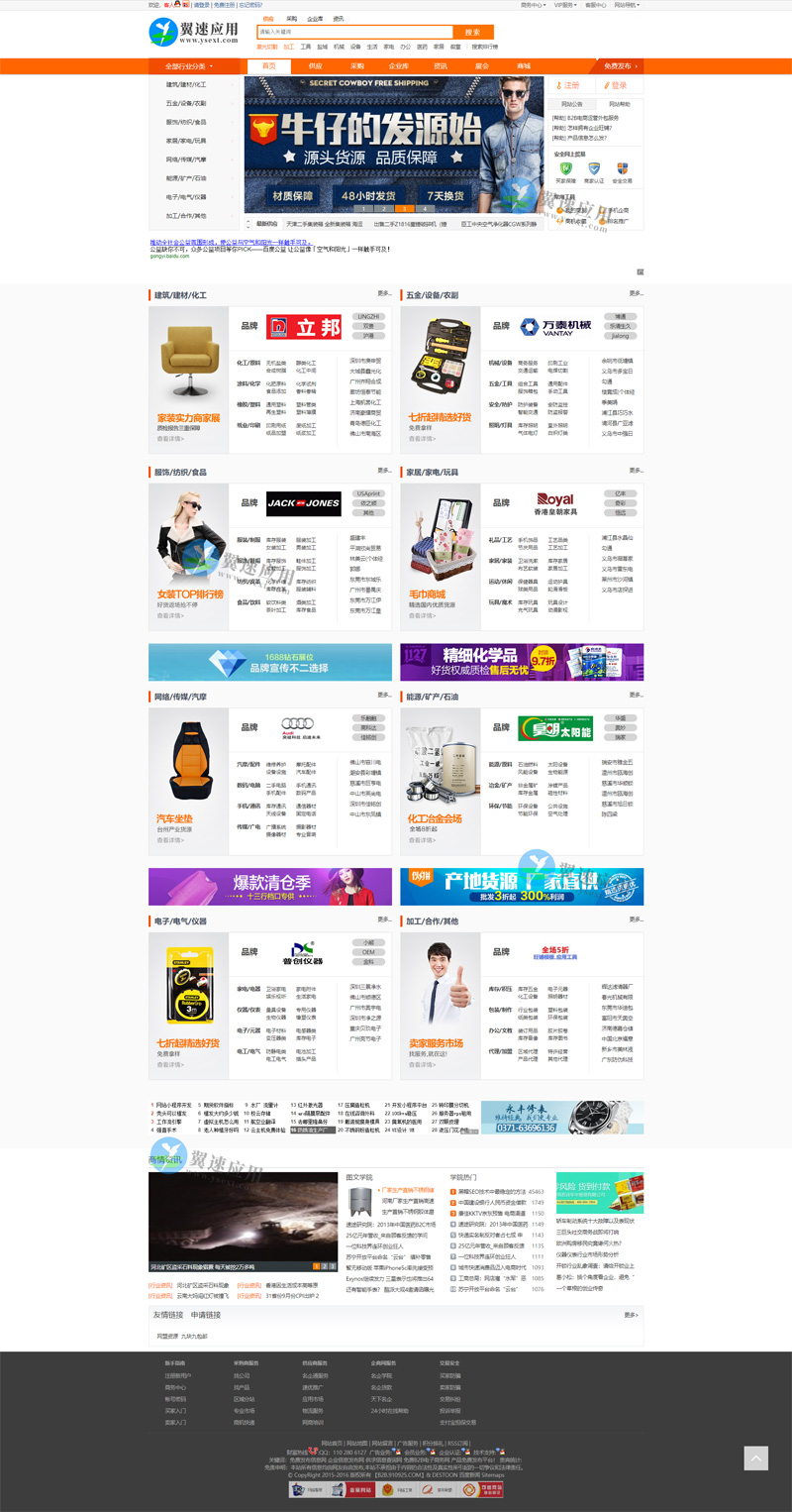 支持destoon6.0版本带手机宽屏适应。模板经过修正+重新设计 V6.0(R20151015)整站带数据,同时修复了很多BUG。伪静态规则已经配置好,要求服务器支持伪静态,如果你的前台,很多链接都打不开,就应该是你服务器不支持伪静态。