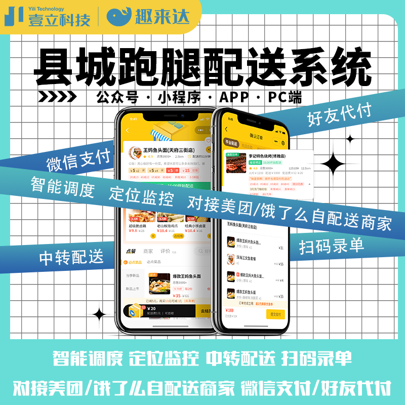 趣来达跑腿配送系统,同城 县城 商圈 校园跑腿服务平台搭建软件